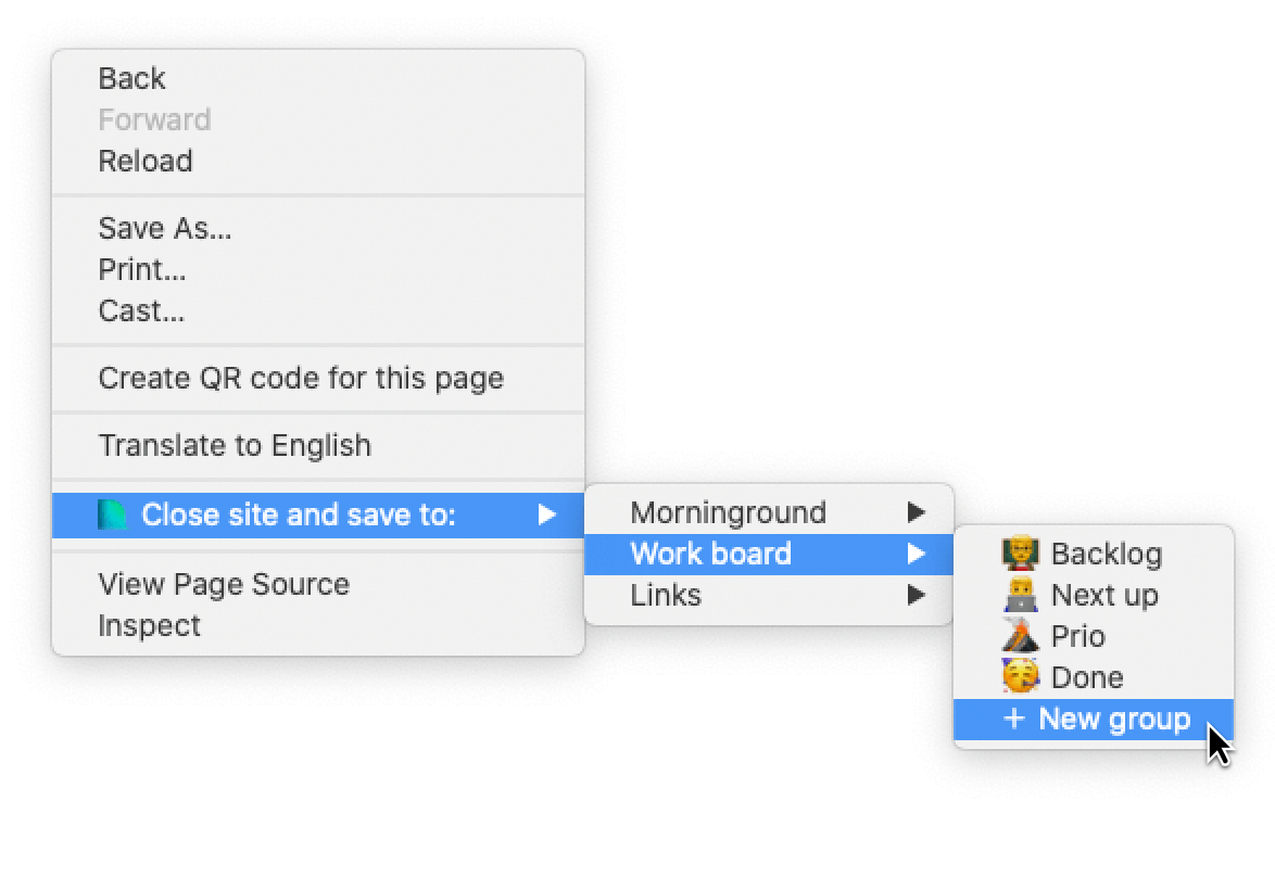 • Right-click urls on sites and save as - You can now right-click urls on sites and save them as sites into existing groups or new groups.